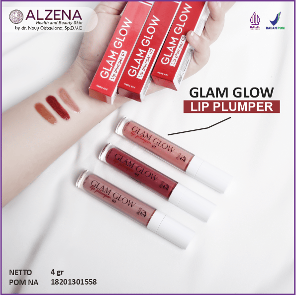 GLAM GLOW LIP PLUMPER 01 merupakan Lip gloss yang diformulasikan dengan rasa mint untuk mengatasi bibir yang kering atau pecah-pecah sehingga menjadi sehat dan lembab serta menampilkan bibir yang lebih berkilau dan bervolume. Mempunyai warna plumper merah muda sehingga membuat warna bibir menjadi pink alami. Mengandung bahan aktif pilihan yaitu: MACADAMIA SEED OIL (Minyak Biji Kacang Macadamia ) asli Australia yang kaya kandungan vitamin E dan mampu melembapkan kulit, mencegah dan mengatasi kerutan serta kerusakan kulit seperti bibir kering dan pecah-pecah. Kandungan vitamin E nya juga bisa membuat bibir menjadi lebih cerah. MENTHOL (Atau Daun Mint) yang memberikan sensasi mint pada bibir, mampu mengatasi keluhan bibir seperti pecah-pecah, kering, dan iritasi sehingga bibir menjadi lebih sehat dan bervolume. TITANIUM DIOXIDE yang langsung dengan cepat melindungi kulit dari UV matahari setelah produk diaplikasikan sehingga kulit bibir terlindungi dan tidak hitam ataupun pecah-pecah karena sinar UV. IRVINGIA GABONENSIS KERNEL BUTTER ( Bubuk Biji Mangga Afrika) yang mampu melawan tanda penuaan dan mengatasi kerutan pada bibir sehingga bibir menjadi lebih halus dan lembab. Serta kandungan bahan aktif lainya yang membuat lip plumper ini menjadi lip therapi dan juga untuk kecantikan. Karena kandunganya yang bagus dan aman Lip Plumper ini aman apabila tertelan.
