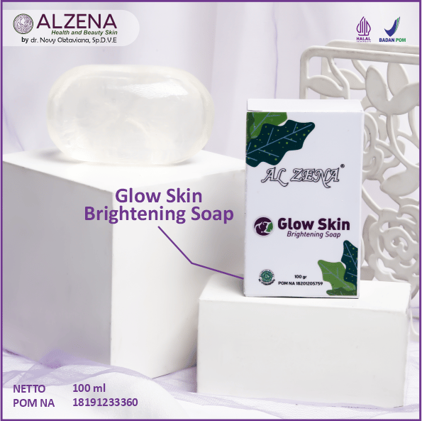 GLOW SKIN BRIGHTENING SOAP merupakan sabun badan yang diformulasikan untuk membantu mencerahkan dan membuat kulit menjadi lebih sehat. Manfaat lainya yaitu untuk melembabkan kulit, menyegarkan kulit, membunuh kuman dan bakteri, menghilangkan bau badan, melembutkan kulit seluruh tubuh, mengurangi bekas atau noda gelap pada kulit badan maupun wajah. Mengandung bahan-bahan pilihan yaitu: COCONUT (COCOS NUCIFERA) OIL yang dapat melembabkan kulit, mengandung antioksidan yang mampu melawan radikal bebas, mengurangi bakteri penyebab jerawat, merawat kulit sensitif dan membuat kulit jadi lebih sehat. GLYCERIN yang mampu mengatasi kulit kering sehingga kulit menjadi lebih lembab, sehat dan kenyal LACTIC ACID yang fungsinya untuk membantu pengelupasan sel kulit mati sehingga merangsang pertumbuhan sel kulit baru sehingga kulit menjadi lebih cerah, mengatasi hiperpigmentasi atau penggelapan kulit, meratakan warna kulit, dan melembabkan kulit. CITRIC ACID yang dapat melembutkan kulit, melembabkan, serta memperbaiki barier kulit yang rusak. Serta bahan-bahan pilihan lainya.